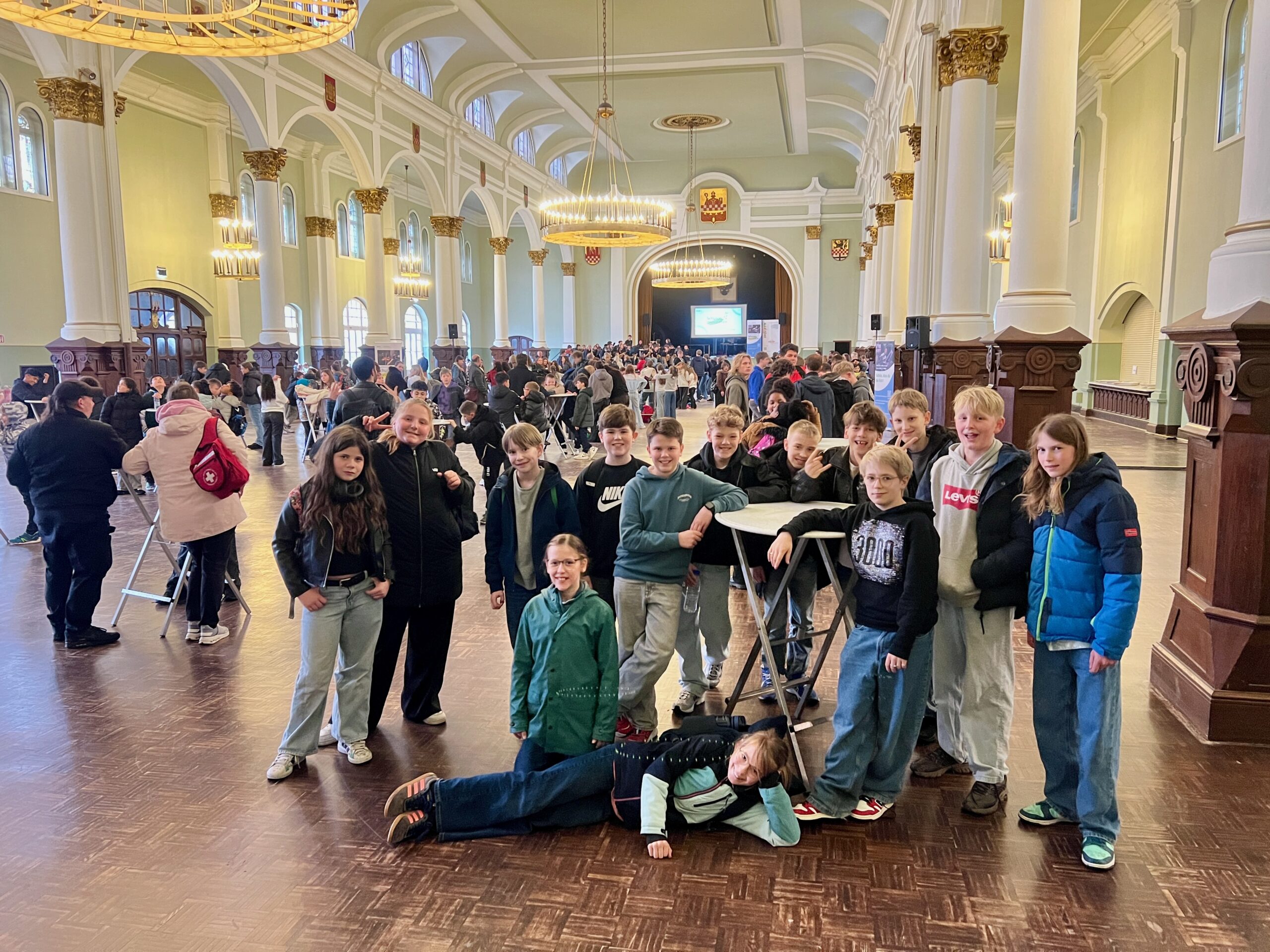 Nach einer kurzen Pause und schnellem Abbau ging’s mit dem Tourbus zur Historischen Schützenhalle. Hier begegneten wir den anderen teilnehmenden Schulen. Die BigBand aus Viersen spielte auf, es folgte eine gemeinsame Musikperformance und zum Schluss gab’s noch eine Urkunde mit auf den Heimweg.