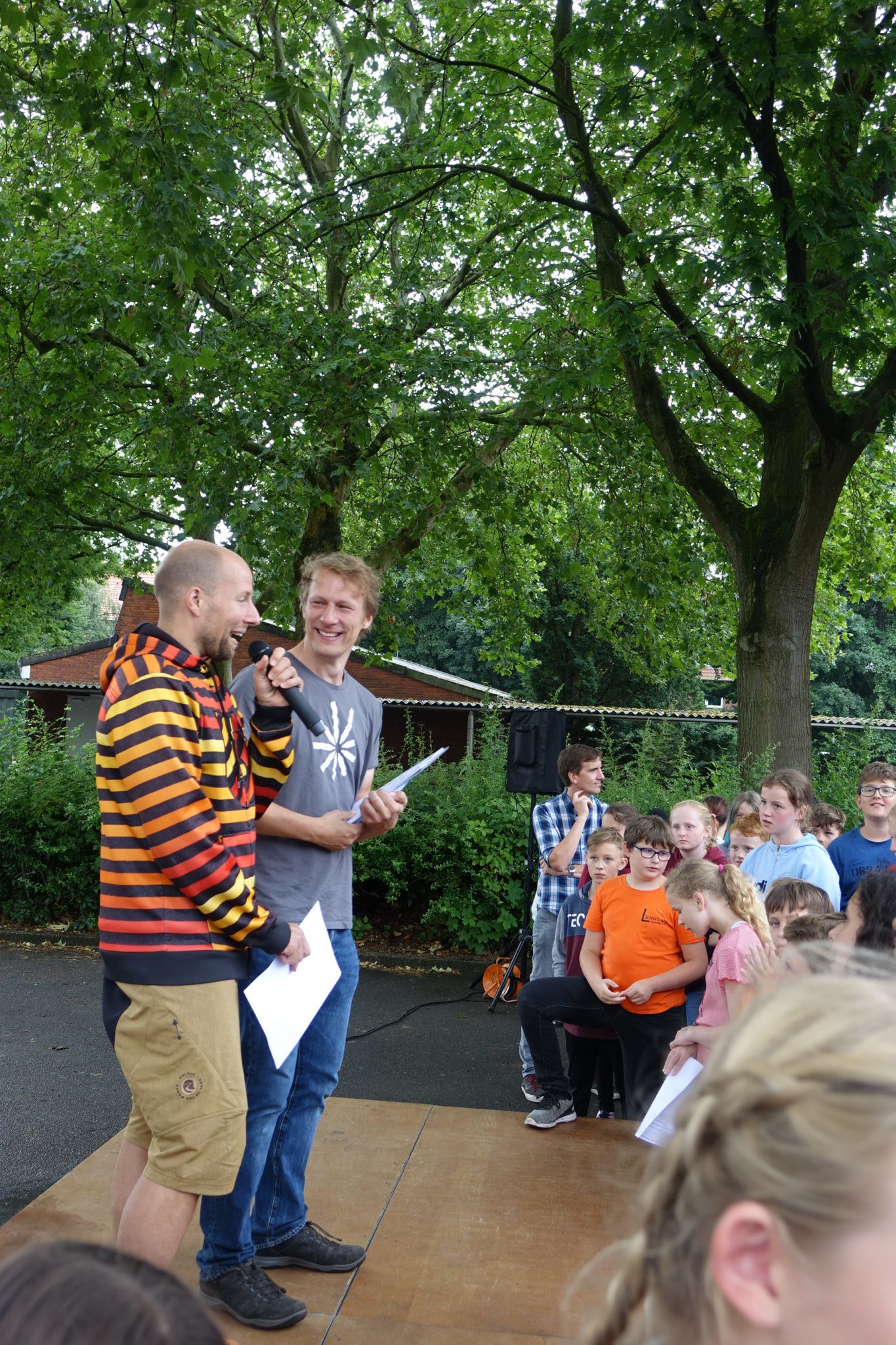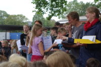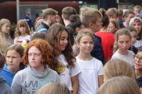 Die Klassenpaten, Medienscouts, die Gewinner von Wettbewerben, die SV, das Team Lichtstrahl Uganda sowie die Unterstützer im Fairtauschtladen gingen unter viel Beifall über den Roten Teppich zur Bühne.