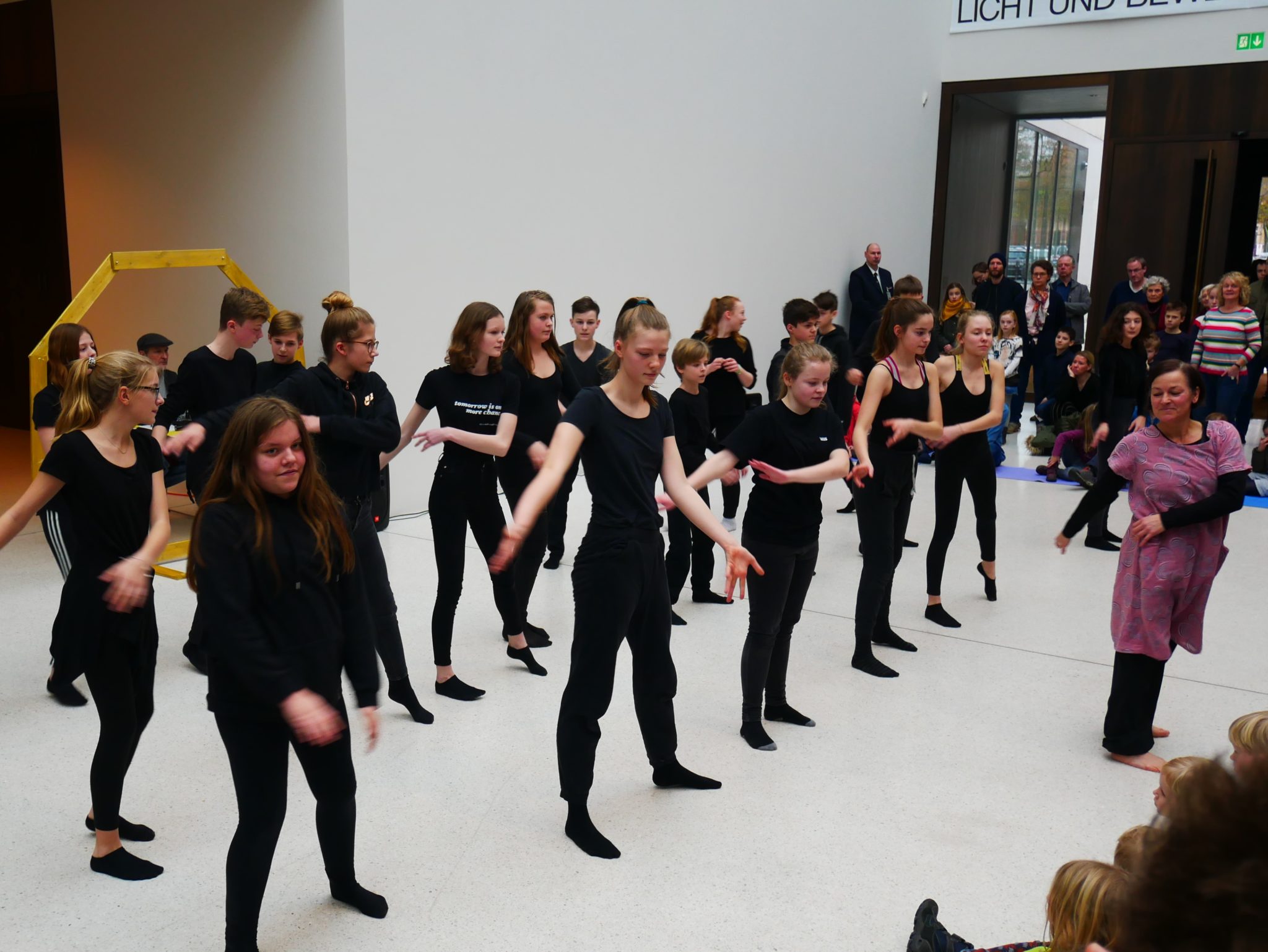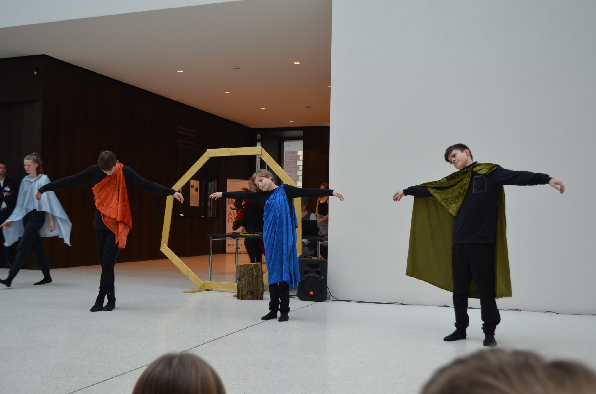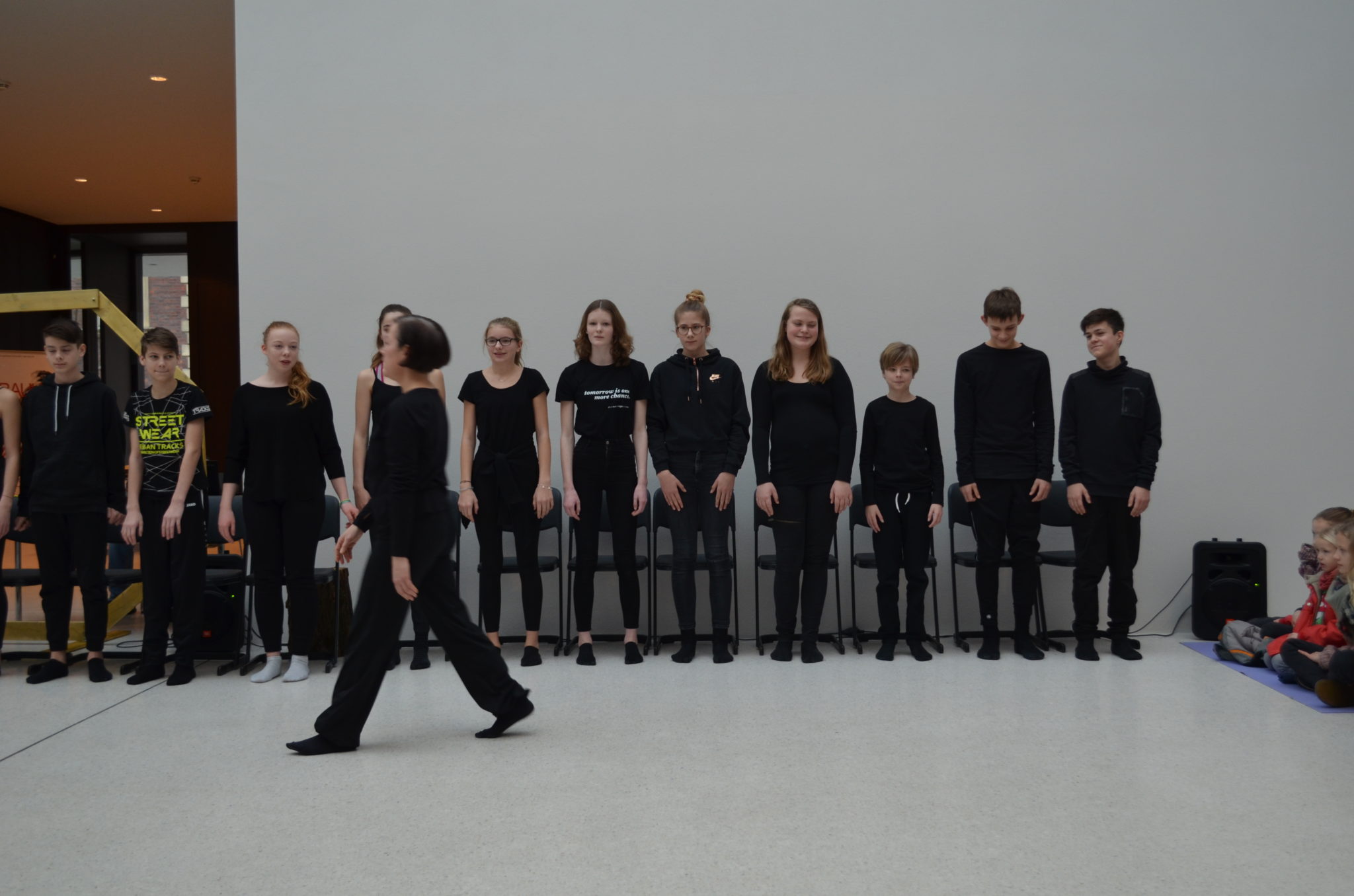 Am Sonntag (10.02.2019) zeigte der Kurs Darstellen und Gestalten des siebten Jahrgangs unter der Leitung von Jenni Bürger seine Tanzperformance im Rahmen des Familientages des LWL-Museums für Kunst und Kultur. Die Schülerinnen und Schüler hatten mit den Tanzpädagoginnen des LWL-Museums Ruth und Ulli Trautmann im Unterricht eine Performance entwickelt, die sich auf das Kunstwerk „Tracht und Bleiche“ (Comicaltar) der Künstlerin Anke Feuchtenberger bezieht. Die  Schülerinnen und Schüler beeindruckten mit Tanz, Schauspiel und selbstgeschriebenen Texten zu dem Kunstwerk und weckten so die Neugier der kleinen und großen Besucher auf die Ausstellung im Museum.