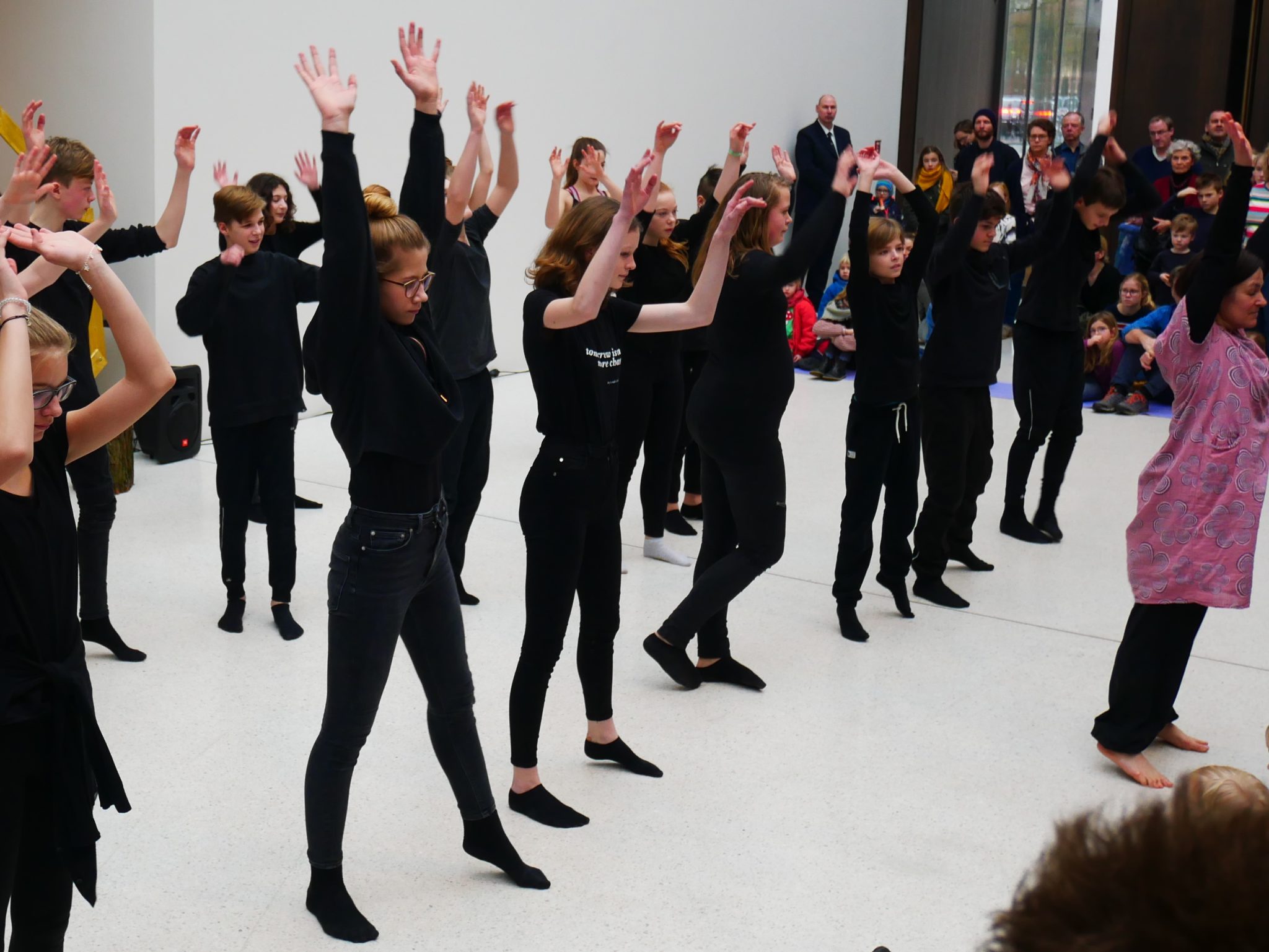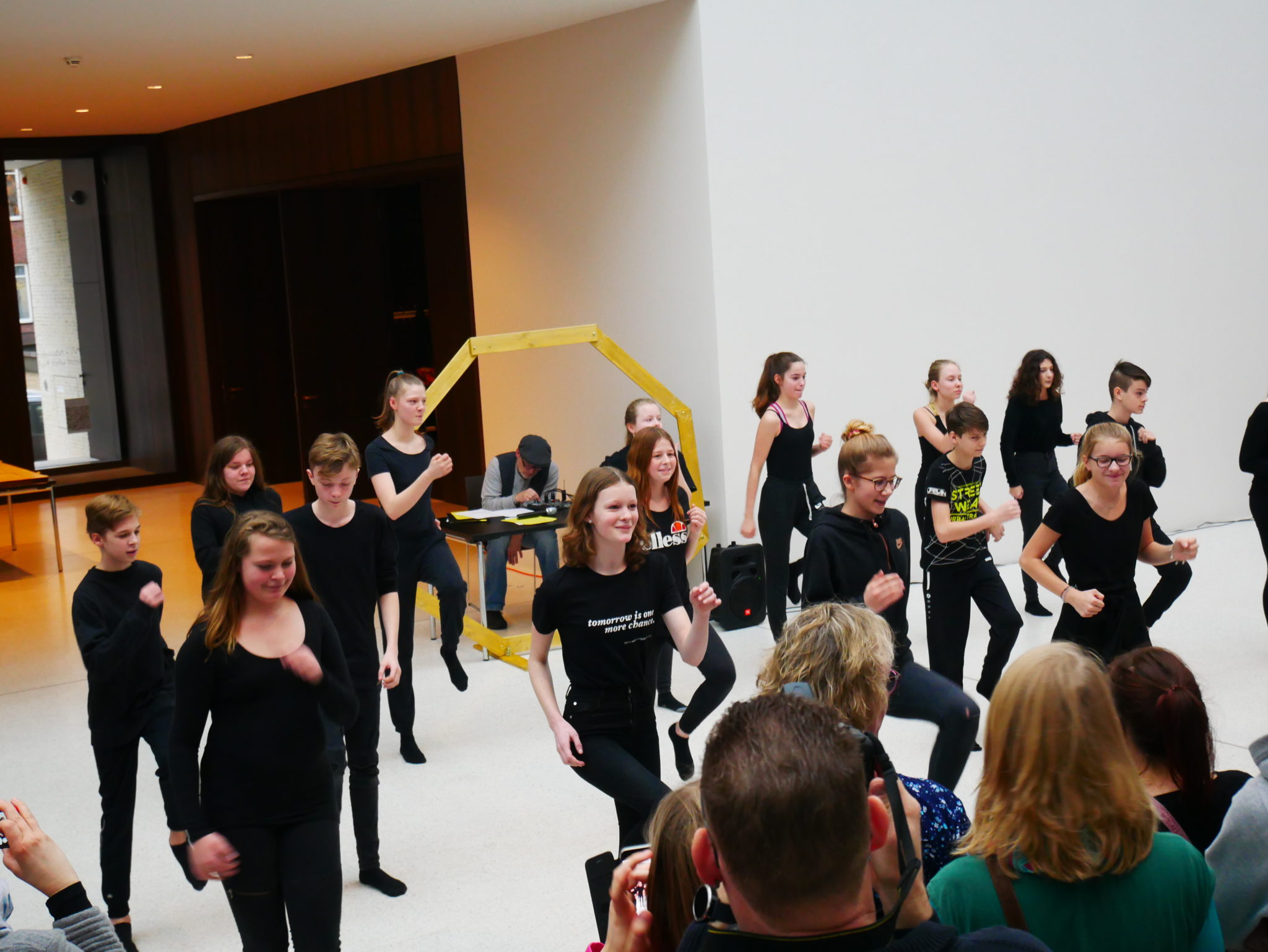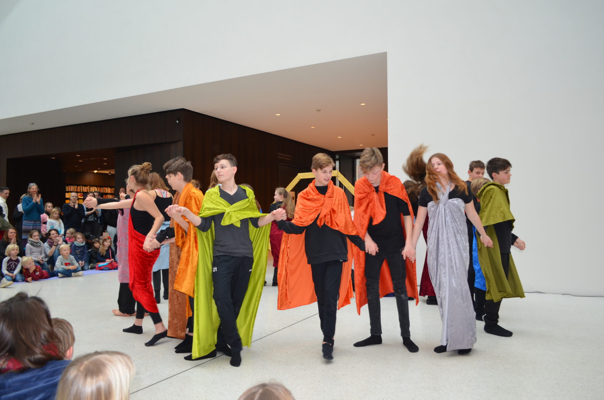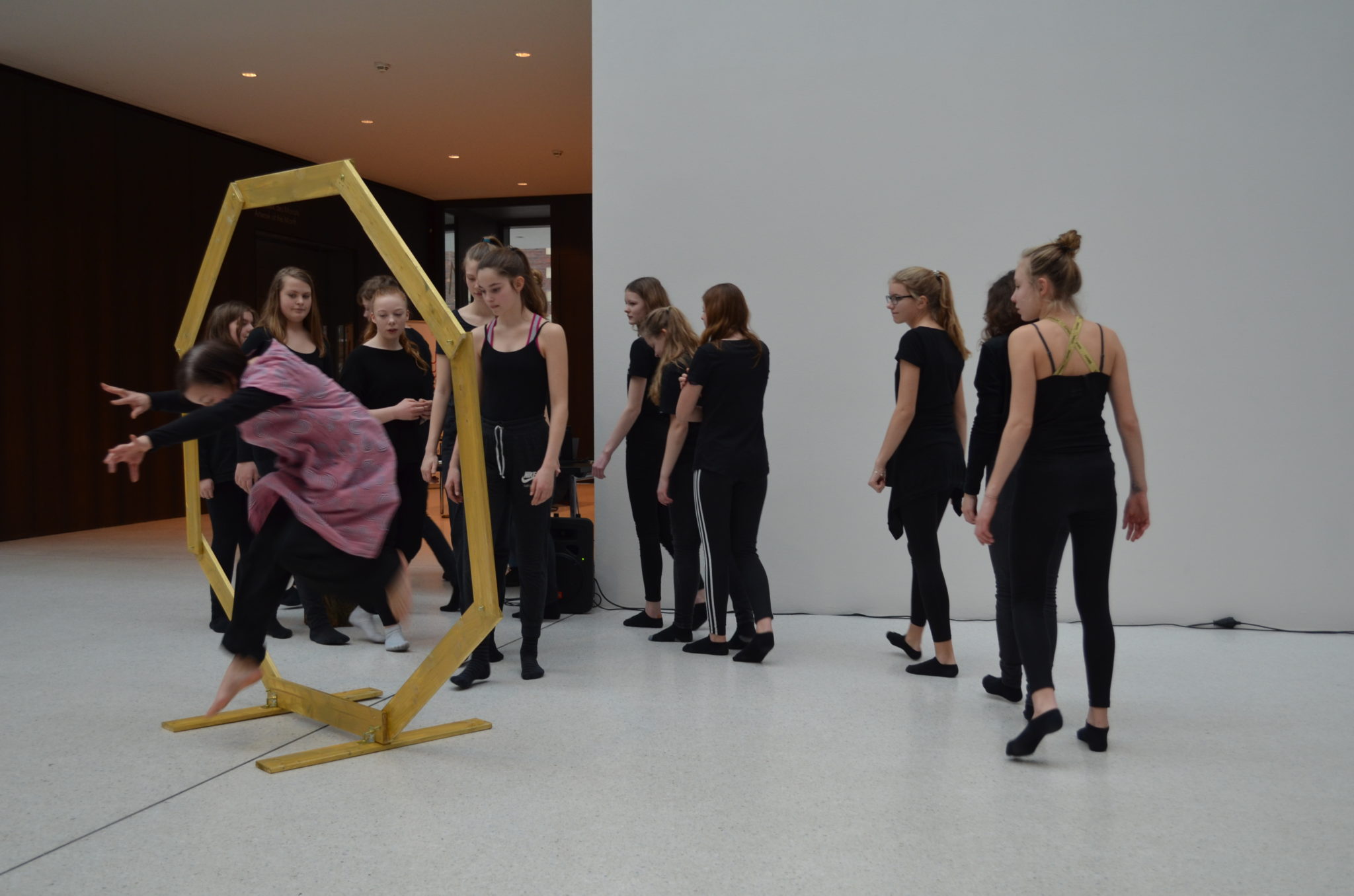 Am Sonntag (10.02.2019) zeigte der Kurs Darstellen und Gestalten des siebten Jahrgangs unter der Leitung von Jenni Bürger seine Tanzperformance im Rahmen des Familientages des LWL-Museums für Kunst und Kultur. Die Schülerinnen und Schüler hatten mit den Tanzpädagoginnen des LWL-Museums Ruth und Ulli Trautmann im Unterricht eine Performance entwickelt, die sich auf das Kunstwerk „Tracht und Bleiche“ (Comicaltar) der Künstlerin Anke Feuchtenberger bezieht. Die  Schülerinnen und Schüler beeindruckten mit Tanz, Schauspiel und selbstgeschriebenen Texten zu dem Kunstwerk und weckten so die Neugier der kleinen und großen Besucher auf die Ausstellung im Museum.